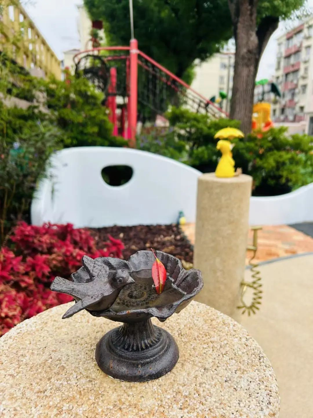 在听觉上,幼儿园提供鸟类饮水盆和鸟类屋,营造良好的生态环境,吸引更多的鸟类生活。此外,还巧妙地利用空间和角落,将自然材料和听觉感官设备投入使用,让孩子听到人和自然的各种声音,感受大自然的和谐旋律。