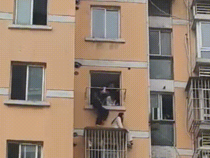 坐在5楼外的窗台顶部