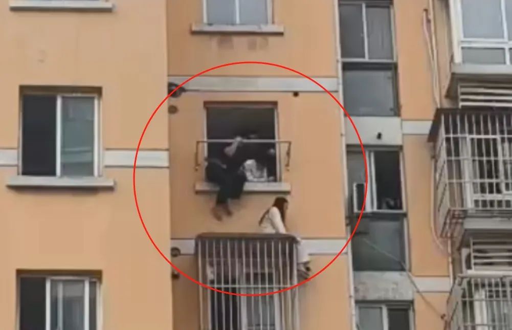 趁着女人不备翻出窗外