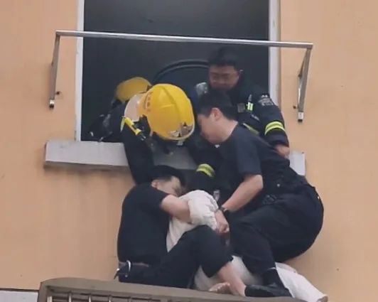 将女子托起进入窗户