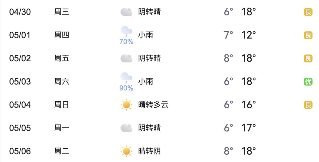 节日期间,天气预报显示,长春以多阴转晴为主,5月1日和3日降水,气温变化较大。在此,我们提醒大家,假期出行时,要根据温度及时增减衣服,谨防感冒。
