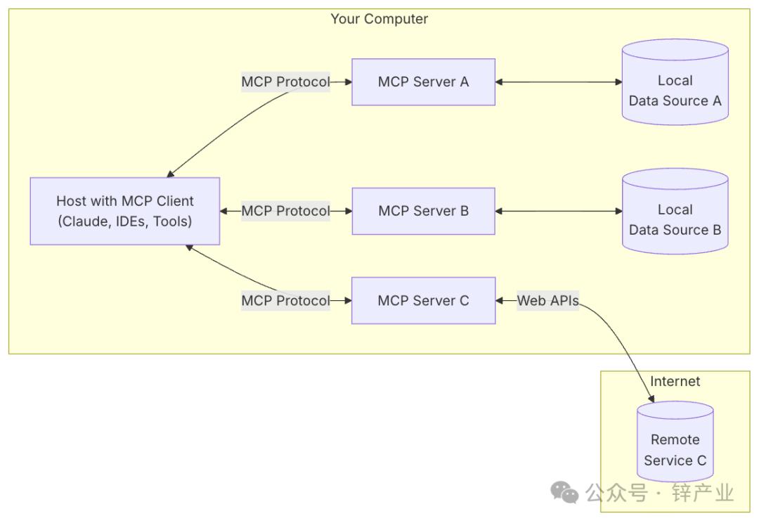 正如USB-C提供了将您的计算机连接到各种外部设备和配件的标准化方法一样,MCP规范了应用程序为大型模型提供上下文的方法,并提供了将AI模型连接到不同数据库工具等标准化方法。。