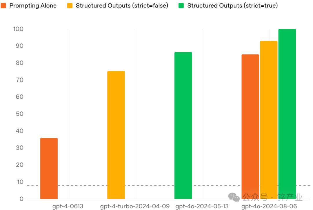 OpenAI于2024年8月在官方博客上正式发布结构化导出。——Structured Outputs,Function 结构化信息输出和工具调用的通过率在calling阶段不到40%,现阶段终于将通过率进化到100%。