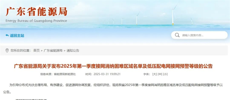 3月31日,广东省能源局关于发布2025年第一季度接网消费困难地区名单和低压配电网接网预警等级的公告显示,25个县(市、区)212个镇(街)主要包括韶关、河源、梅州、惠州、湛江、茂名、清远、云浮等8个城市。