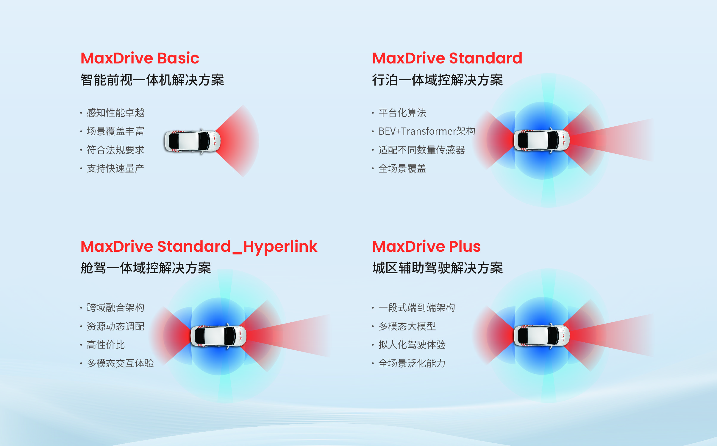 第一个是MaxDrive Basic,智能化前视一体机解决方案,这是一套针对性的。 L2 一级智能驾驶开发算法平台解决方案。这个方案可以简单地理解为,这个方案是为了更加关注需求,对成本更加敏感的入门级市场。入门级用户对辅助驾驶的需求没有高级玩家那么细分和个性化。例如,大多数用户只需要基本的辅助驾驶功能,包括ICC智能巡航和主流ADAS。还有MaxDrive Basic方案正好可以满足这些用户。