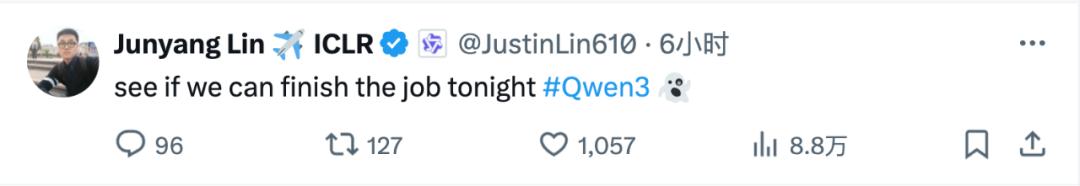 从中午开始,Qwen 三条即将发布的小道消息,已满天飞舞。Qwen团队负责人林俊邈也在X上暗示:“看看我们今晚能否完成Qwen。 3工作”。