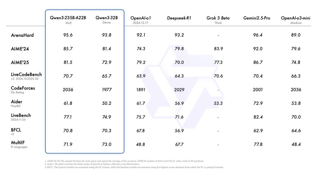 Qwen 最终在凌晨5点上线。Qwen新一代。 3参数仅为DeepSeek-R1的1/3,第一,成本大幅下降,性能完全超过R1、OpenAI-世界顶级模型,如o1。