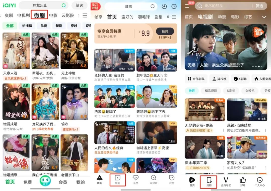 长视频平台也在充分发挥其优势。“精品”是爱奇艺、优酷、腾讯三大短剧计划中反复出现的关键词。比如爱奇艺推出的“千部精品微剧计划”和“百部精品短剧计划”。爱奇艺创始人龚宇也明确提到:“短是方式,精是核心。”腾讯视频也打出了“以‘精品’突破游戏,以‘创新’突破游戏”的口号。