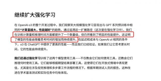 前不久,OpenAI 在 o3 在官方文件中,他们发现模型推理时间越长,效果越好。