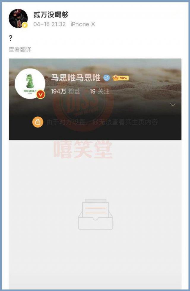 马思唯说,他应该是几年前拉黑了2万,应该是因为对某些事情有不同的看法,主要原因不记得了。