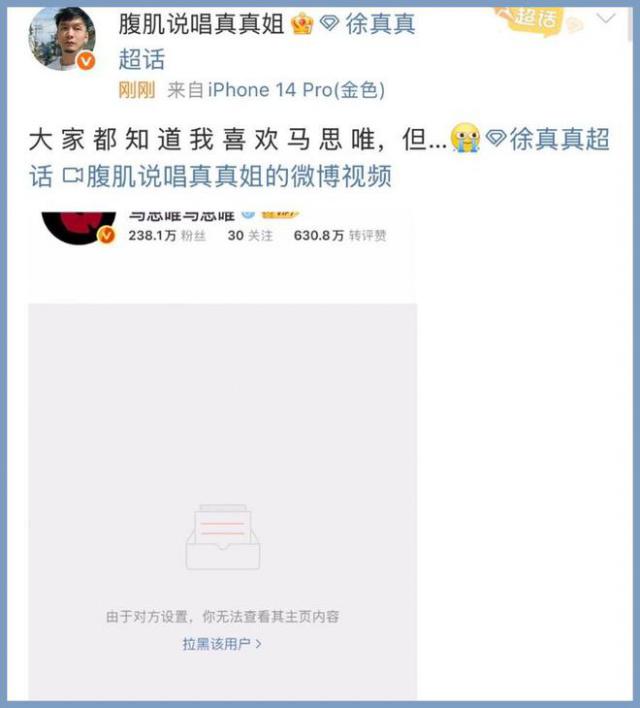 是啊,徐真真突然宣布,他被马思唯拉黑了。