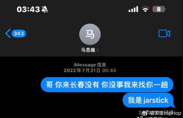 Jarstick 晒出 2022 2008年给马思唯的短信记录,表达了他的不满。