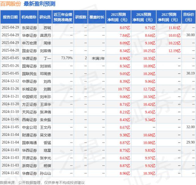 证券之星消息,2025 年 4 月 29 日百润股份(002568)宣布,国海证券刘洁铭、开源证券张恒玮、东方证券燕斯娴、东北证券淞磊、财通证券吴文德、东吴证券于思淼、长江证券冯萱、沈万宏源严泽楠、兴业证券汪润、中信建投夏克扎提、太平洋证券肖依琳、方正证券康宇喆、华西证券王厚、野村证券彭琦茹、华泰联合倪欣雨、东方财富王尧、银河证券刘来珍、国盛证券李梓语、德邦证券尤诗。 2025 年 4 月 29 每天调查我们公司。