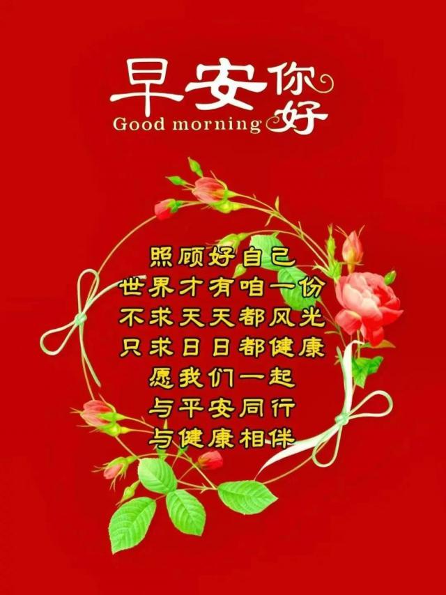 浅薄如流年,慢慢品味生活。让我们每天阳光明媚,温暖和谐,一起度过这段歌曲岁月。早上好!人走了几千里,友谊在那里,水流回到了大海;大树之间有根,亲戚朋友心连心。虽然我们每天都不见面,但我们总是在心里。早上好!