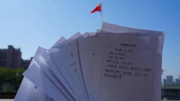 所有干警都在活动中 执行保证书” 上面庄严地写下了对职业的承诺:“坚守善意执行理念”“践行司法为民宗旨”“严守纪律底线”… 一行行整齐的字迹被郑重封存在执行指挥中心的档案柜中,待明年五四青年节开封检查。