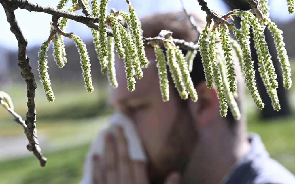 一名男子对白桦树的花粉过敏,当地时间2025年4月3日,德国巴登-符腾堡州斯图加特。