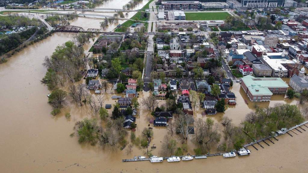 2025年4月7日,美国肯塔基州法兰克福遭受了多日暴雨,造成了严重的洪水。