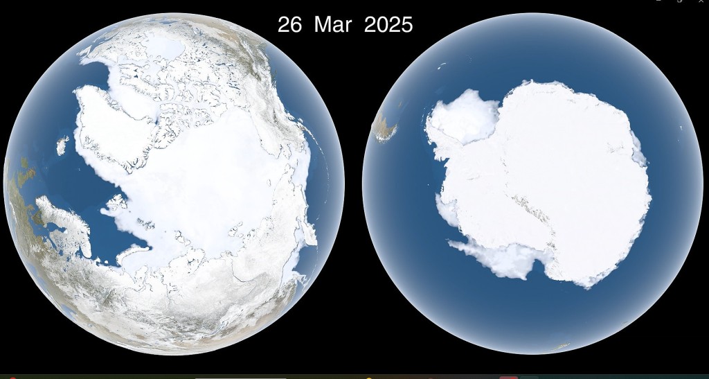 北极和南极海冰覆盖量在2025年达到历史最低水平。