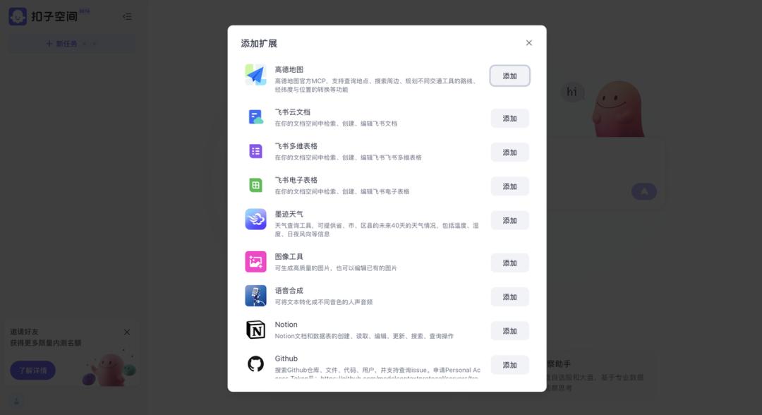 纳米AI的主要卖点是「MCP万能工具箱」,号称接入了近百个高质量的第三方工具。纽扣空间的扩展相对较少,有些只有简单的功能。以腾冲攻略为例。我可以在纽扣空间的墨迹天气扩展中加入天气预报攻击策略,但没有成功利用高德地图扩展生成日常景点路线图。在大多数尝试中,只显示了腾冲在地图上的位置。