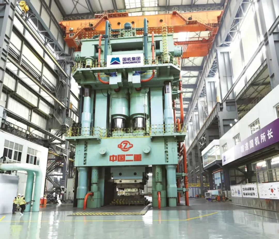 8万吨模锻冲压机高达42米,相当于15层楼的高度,总重量2.2万吨。高压缸由液压泵驱动,可瞬间产生高达8万吨的压力。这样的“大家”是一个高档精密模锻件,用来控制C919等大型飞机锻造的正负误差在一毫米内。