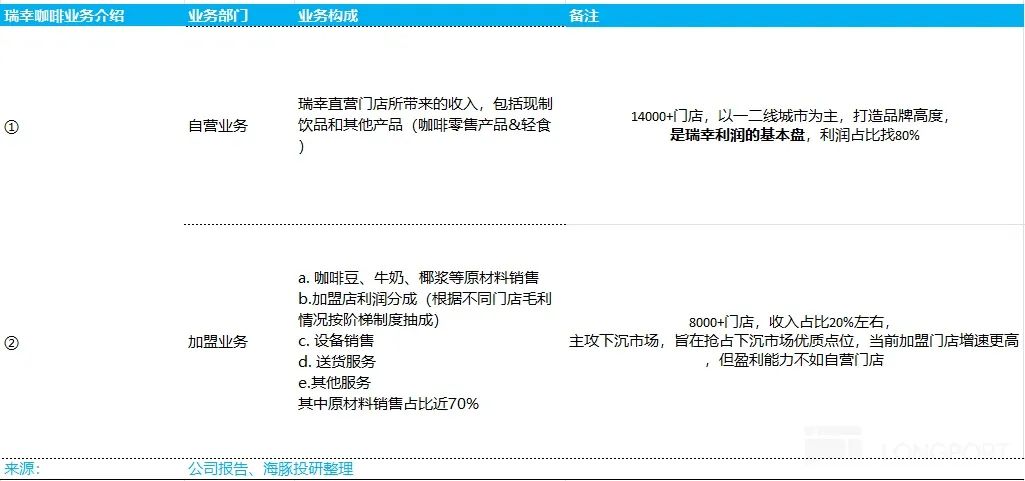 根据瑞幸咖啡披露规格,公司分为两大业务条线:自营业务和加盟业务。