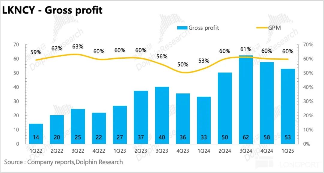 从具体数据来看,海豚君估计第一季度杯价同比上涨。 5% 在上下条件下,整体直营店杯量同比增长 33%,单店平均每日杯量也略有增加,加盟店的情况也相似。与此同时,我们也算得上是按月活跃付费用户数来计算的,人均每月购买杯数也实现了同比和环比的增长。如果价格上涨,还可以得到顾客一如既往的青睐,足以体现瑞幸相对较高的品牌心智。