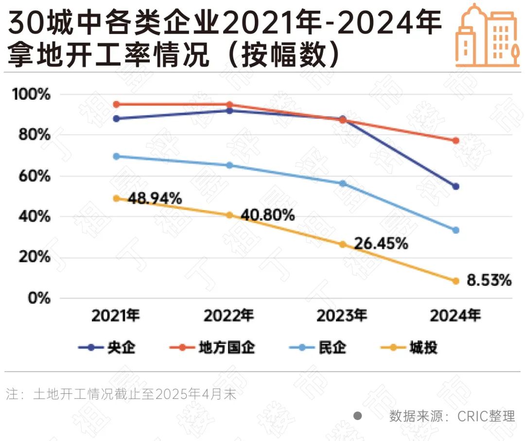 除了征地总量下降之外,开工意愿和开工率也很大程度上决定了未来代建城市投类项目的空间。