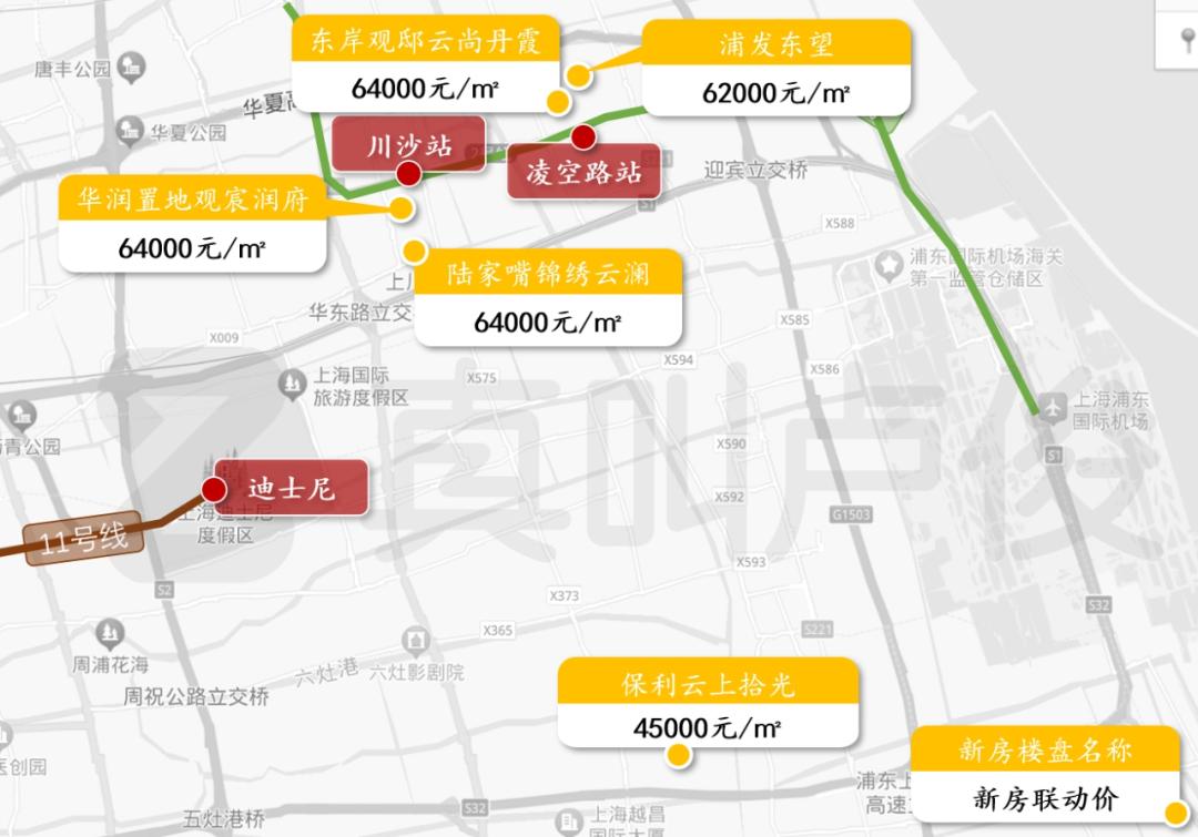 比如最近很受欢迎的川沙板块,迪士尼乐园是中国最受欢迎的游乐园之一,房价越来越高。但仔细研究新房价格,不难看出,最贵的区域是张江溢出二号线,迪士尼度假区对板块楼市的加成非常有限。