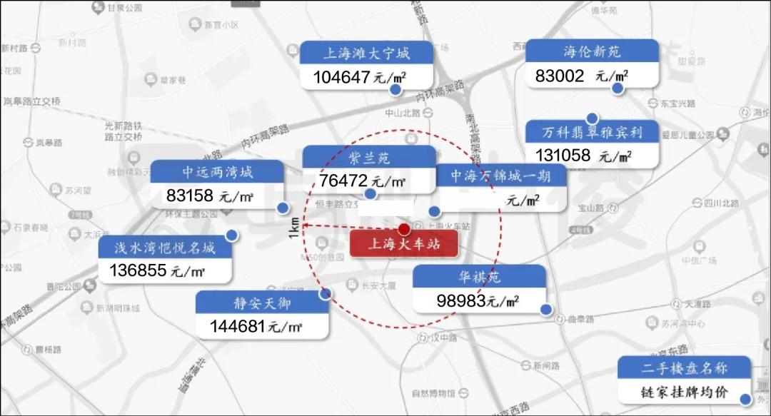 无论是静安还是普陀,上海火车站附近的小区房价都与到火车站的距离没有直接关系。