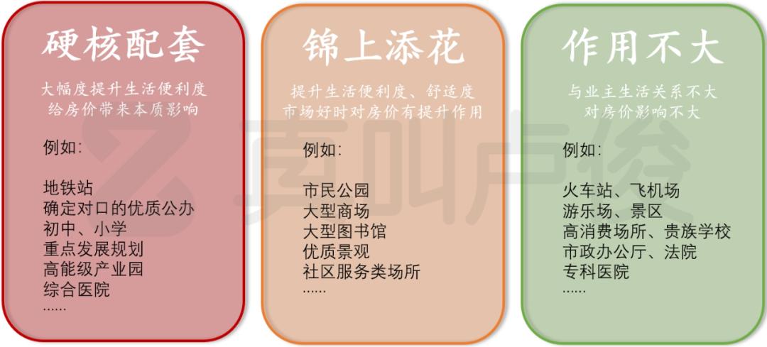 下图我们整理了一下,简单区分了各种配套服务能级。