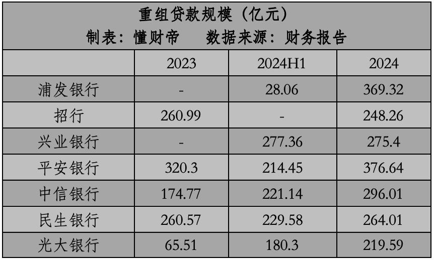 相比之下,2024年招商银行重组贷款规模下降4.88%,光大银行增长2.35倍。浦东发展银行的增长率明显大于同行。