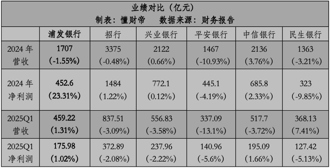 上海浦东发展银行2025Q1表现依然光明,营收459.22亿元,同比增长1.31%,净利润175.98亿元,同比增长1.02%,是唯一一家“双增长”的股票银行。