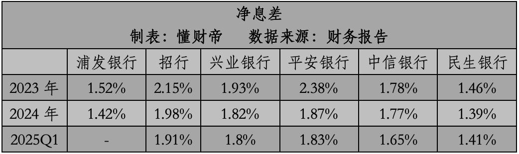 尽管上海浦东发展银行没有披露净息差数据,但财务报告显示,贷款总额增长了3.49%,净利息收入只增长了0.48%,这意味着其净息差继续承压。