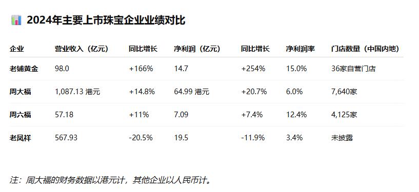 2024年,老铺黄金销售额约98亿元,营业收入达85.06亿元,同比增长167.5%;净利达到14.7亿元,比去年同期增长254%。