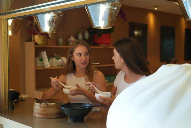 在商店里,不同的食客讲述了他们和松月楼的故事。一位来自俄罗斯的旅行者分享道:“我以前在中国呆过三年。我是素食主义者十几年了。每次查百度地图找素食店,松月楼味道很好,健康清淡。吃了之后,我的胃很舒服。我非常喜欢。”松月楼素食的魅力跨越了国界,征服了远方游客的味蕾。