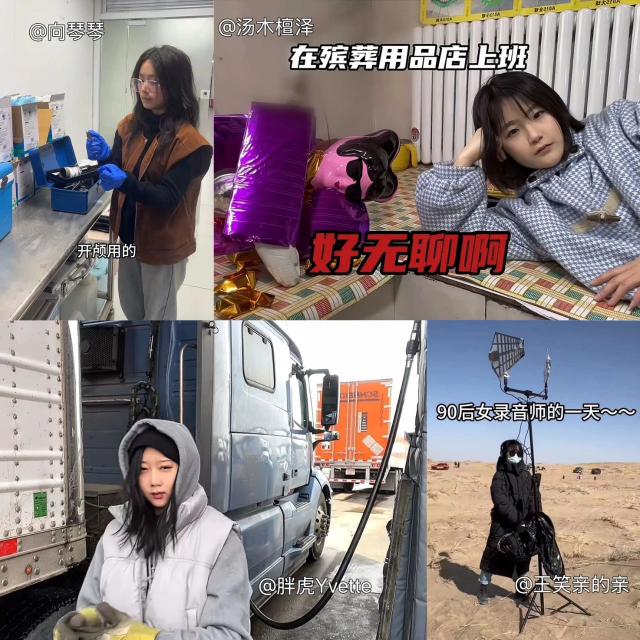 我惊讶地发现,越来越多的女性愿意展示自己的职业和专业,也愿意看到这一面:无论是在加拿大冰雪中驰骋的货运司机。 @胖虎 Yvette,殡葬行业从业者不时讲一些冷酷的“炼狱笑话” @汤木檀泽,还是背着设备在沙漠里跑来跑去的录音师? @王笑亲亲,使用神似开碧根果工具的器材开头颅法医 @向琴琴...在各行各业,没有人能再忽视支持整个社会运行的女性力量。