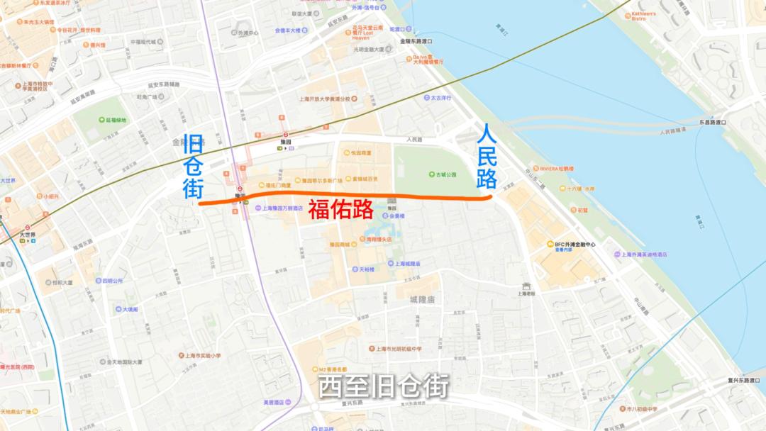 福佑路曾经被称为白衫庵后街和穿心街。东端人民路,西至旧仓街,是上海填补和筑路的道路之一。清末,它是由原来的黑桥填补而成的。