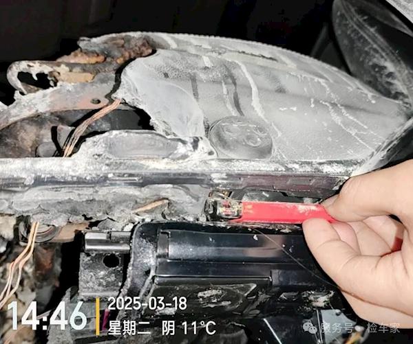 使用特斯拉计检验场强,发现左前座位值最高,确认这里有火点。