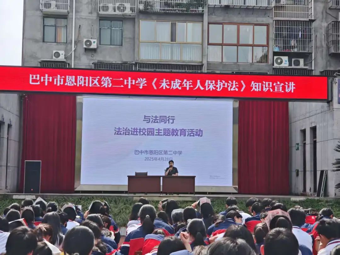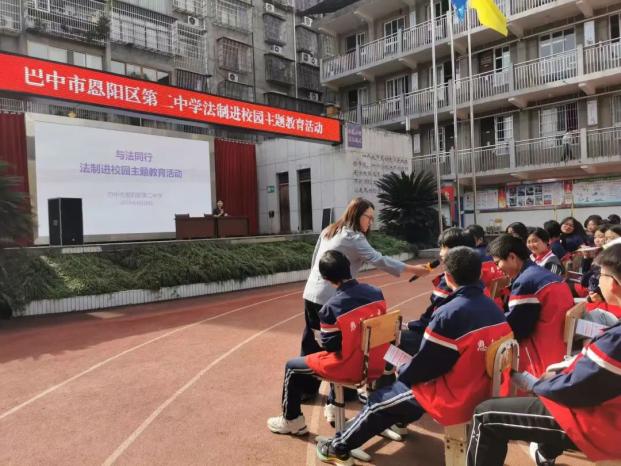 4月28日,恩阳法院法治宣传小组成员辛琳走进恩阳区第二中学,以“青春伴银铃法律护理校园”为主题进行法律宣传,为学生播种法治种子。
