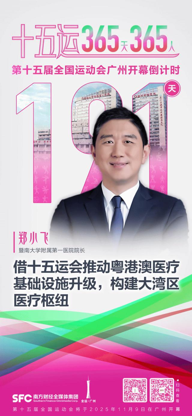 第十五届全国运动会将在 2025 年 11 月份在粤港澳三地举行。它是一项体育赛事,也是促进全民健身、促进体育事业高质量发展的重要机遇。在十五运会开幕倒计时一周年之际,南方财经全媒体集团与十五运会、残特奥会广州赛区执委会推出“十五运会” 365 天 365 “人”栏目聚焦选手、企业家、专家学者、体育爱好者、公众的全运故事和全运期待,让更多人了解和支持十五运,生动展现中国的体育精神、城市活力和文化魅力。