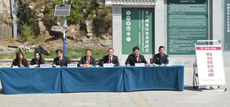 青山有黛景飒美,蓝天白云气体新。太行云顶王莽岭五一假期景区,游客如织,熙熙攘攘。峰峰云景幻景美伦呈现,龟驼神峰昂首挺姿迎接八方游客。陶醉自然,享受悠闲,悠闲度假,陶醉心情。保护生态美,法治保障第一。陵川法院以司法职能为基础,维护和谐与安宁。依托王莽岭法院,选派业务骨干组成“假日法院”,以“旅游”为基础。 “司法”巡回方式,为游客、景区及周边群众提供温馨的司法服务!