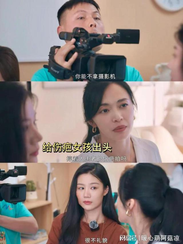 当一个女病人被镜头拍到脸上有疤痕时,她站出来说这种行为“不礼貌”,然后她继续谈生意,而一个女病人偷偷看着她,眼里充满了感激和欣赏!