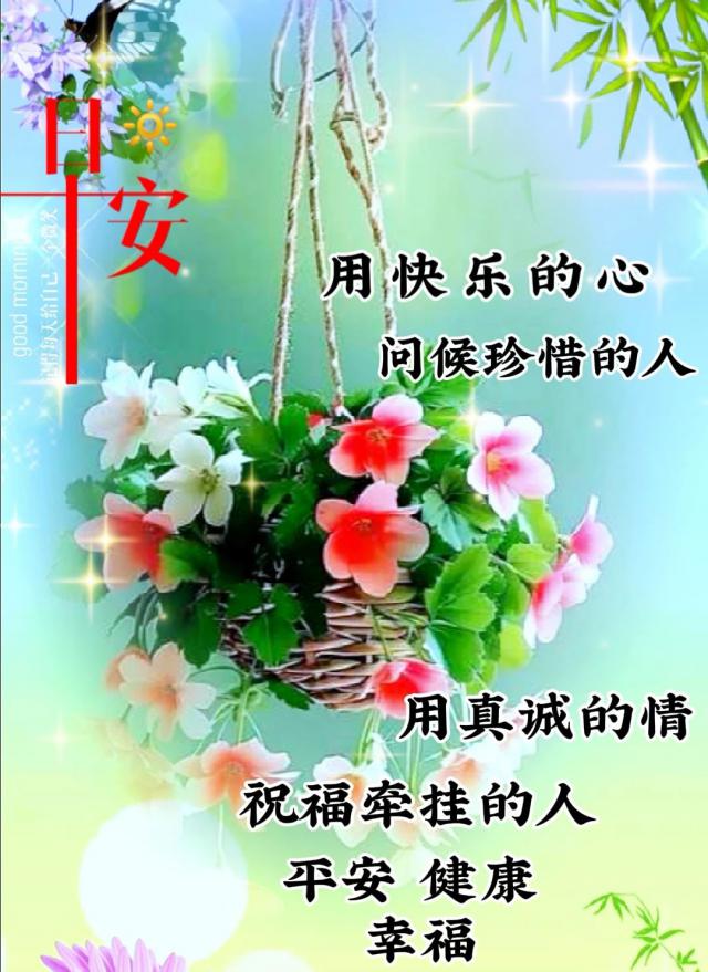 亲爱的朋友们,早上好,祝你们每天工作顺利,取得巨大成就。朋友顺眼,爱人顺义,爱情缠绵,生活顺风,喜事连连,永远幸福!永远健康!快乐,认识你真好!
