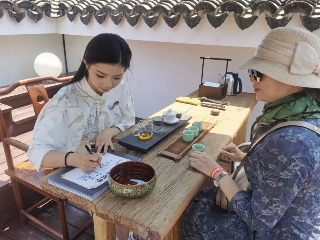 那天参加演出的同学都来自视觉艺术学院音乐舞蹈学院,很多同学都是第一次跨界感受演员。参加曼丽国家标准舞蹈专业的学生余沁媛兴奋地告诉记者:“与以往的体育场和表演不同,今天是沉浸式的剧场表演。在扮演角色的过程中,与市民和游客互动非常有趣。与此同时,通过泗泾赵氏工坊的星·杂剧《伪装者》,对中国传统戏剧文化有了更多的了解。”