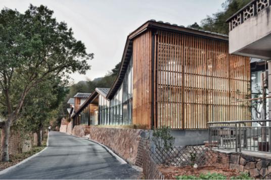 中国医院项目团队负责农民市场的设计。通过尊重福建当地建筑文脉的轻设计,在农村建设中精心呵护周边生态环境,形成集宣传展示、电商平台、农业教育、土特产线上线下交易、农村物产田园感受于一体的现代农村公共服务建筑。主建筑群采用山边两栋废旧老房子改造而成,选择旧建筑的策略,保留建筑的木梁青瓦和原貌;通过新设计的折叠屋顶,道路两侧串联散落的块,营造出山区建筑独特的错落感。