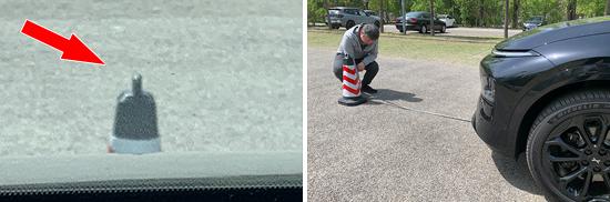 我们采用高度高度来测试前方视野阶段。 70cm 以桩桶为参考,然后调整车距,直到主驾驶座可以看到桩桶的上缘。经过测试,桩桶和车前最后测量的数据是 在测试过的同级别车型中,1.795m处于上游水平。