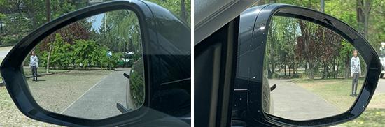 普通镜片用于评估汽车的左右后视镜。经过实际测量,左右后视镜的视野范围分别是 24.9 ° 和 23.8 °,测试过的同级别车型,各自处于中游和中上游水平。