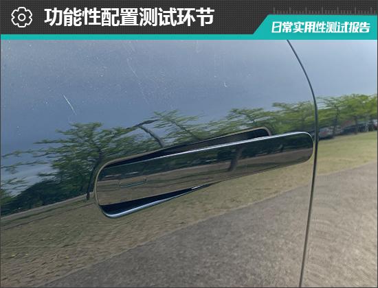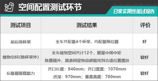 实际测量后,除了墨镜,其他固定物品可以合理放置在测试车前排的每个储物空间。中控台下方的储物槽容量大,可以满足消费者对空间的需求。需要指出的是,测试车前门扇的储物槽容量略小,需要进一步提升。
