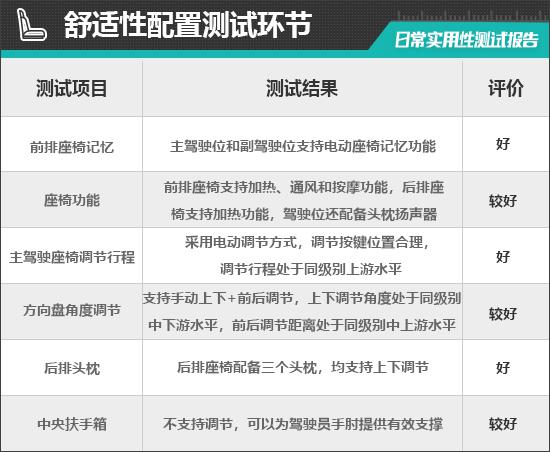 第二,舒适性配置测试环节