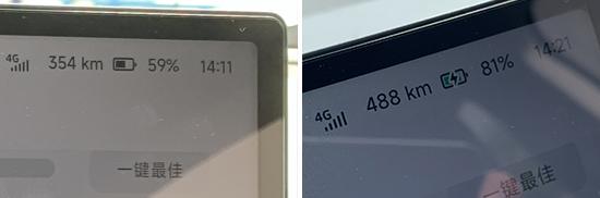 另外,我们还测试了充电效率。实际测量使用快充桩充电 10 几分钟后(波峰用电),电量从 59% 充至 续航里程提高81%。 134公里,与车辆计算机预期的耗时基本一致。